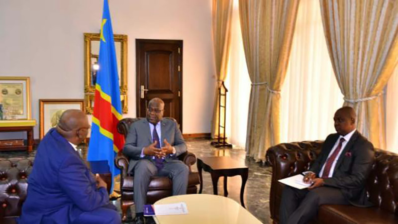 Le Président de la République, Félix-Antoine Tshisekedi Tshilombo, a reçu en audience, lundi 10 juin à la cité de l’Union africaine (UA), le président de l’Église du Christ au Congo, le révérend André Bokundoa Bo Likabe, venu lui présenter ses civilités. Le prince de l’église a déclaré à la presse à l’issue de l’audience qu’il est venu en visite de courtoisie, car depuis qu’il est à la tête du pays, il ne l’avait pas encore rencontré. Il a ajouté qu’il a saisi cette occasion pour lui présenter, au nom de l’église du Christ au Congo, ses sincères félicitations pour sa victoire à la présidentielle de décembre 2018.