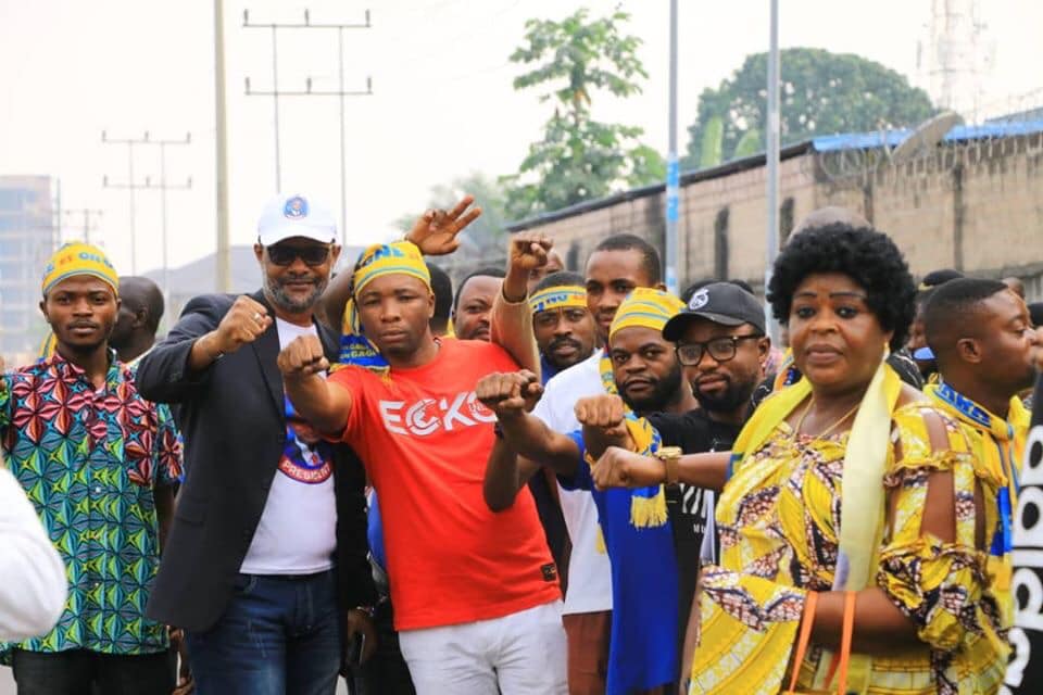 En réponse aux manifestations de la BASE UDPS contre les députés du FCC, les militants « bérets rouges » du PPRD manifestent à l’instant devant le Palais du peuple.