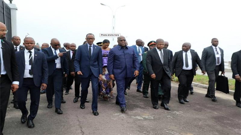Le président angolais João Lourenço et son homologue rwandais Paul Kagame sont arrivés au Stade des martyrs où se trouvait déjà Félix Tshisekedi. Les trois hommes s’étaient précédemment entretenus dans le cadre d’une réunion tripartite sur la coopération régionale et le renforcement de l’axe Congo-Angola-Rwanda.